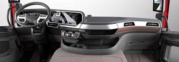 A választható lehetőségeknek köszönhetően az új generációs DAF-tehergépkocsik fülkebelsőjét a saját stílusához igazíthatja. Két lenyűgöző színséma elérhető: a sötét-meleg, illetve az exkluzívabb hatású ilágos-luxus kombináció. A díszítőelemek három színben állnak rendelkezésre: a kifinomult, prémium fahatású Natura, az elegáns, ezüst színű Argenta, illetve a sötétebb, dekoratív mintázatú Hexagon. Bármelyiket is választja, garantált az ultramodern, prémium megjelenésű fülkebelső, amely tökéletes összhangban van a tehergépkocsi egészével. Stílus és funkcionalitás páratlan ötvözete.
